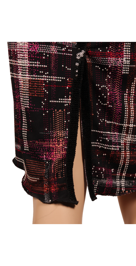 JUPE LINDA : Jersey fluide imprimée, facile à assortir. On aime la coupe seyante de cette jupe droite. Ses fronces et sa fente dos pour mettre en valeur la cambrure. Finition délicate en dentelle pour la ceinture. Fabrication Française.